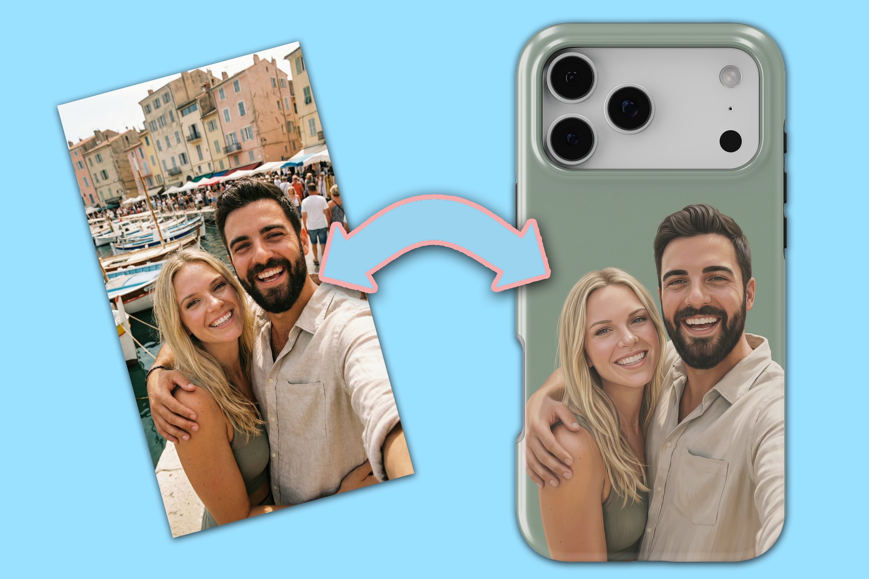 - Our hyper-intelligent Casetful image generator detects the subjects in the photo, and creates a beautiful realististic stylized illustration, and adds a carefully chosen tasteful background colour.